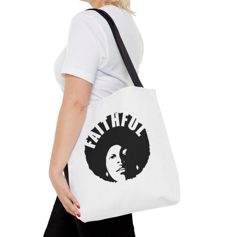 A durable and versatile tote bag with a design focused on faithfulness. Perfect for everyday use, this tote bag is made of 100% polyester with reinforced stitching on handles and boxed corners for added durability.